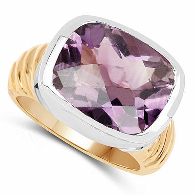 7.78CTW Genuine Amethyst .925 Sterling Silver Gold Plated Ring