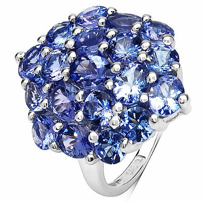5.28CTW Genuine Tanzanite .925 Sterling Silver Cluster Ring