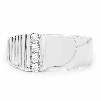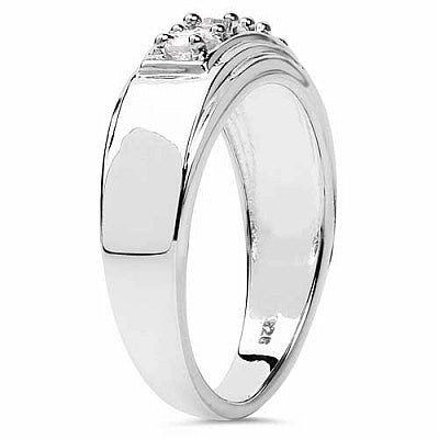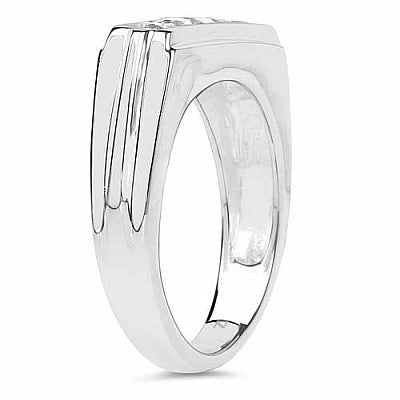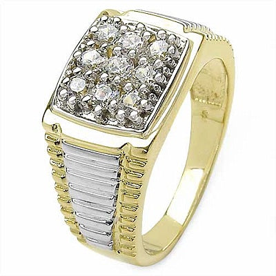 0.70CTW Genuine White Cubic Zircon .925 Sterling Silver Gold Plating Men's Ring