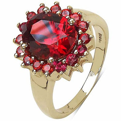 5.02CTW Red Cubic Zirconia & Orange Cubic Zirconia 14K Yellow Gold Plated Brass Ring
