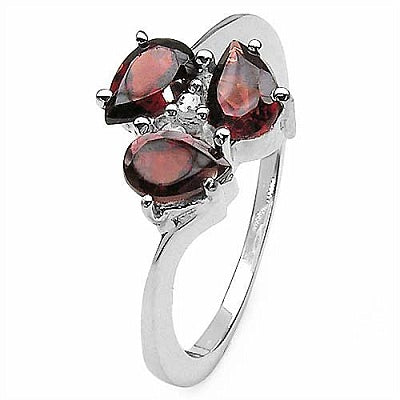 1.37CTW Garnet & White Diamond .925 Sterling Silver Ring