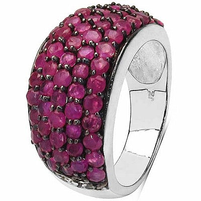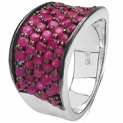 3.05CTW Genuine Ruby .925 Sterling Silver Cluster Ring