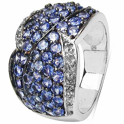 2.50CTW Genuine Tanzanite & White Topaz .925 Sterling Silver Cluster Ring