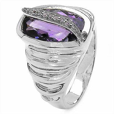 8.47CTW Genuine Amethyst Rhodium Plated Brass Ring