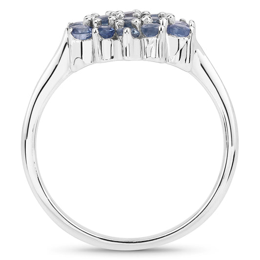 Genuine Blue Sapphire Sterling Silver Cluster Ring