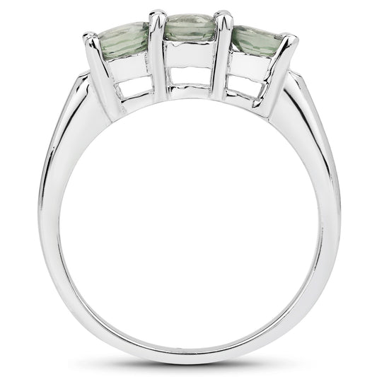 Genuine Green Sapphire Sterling Silver 3-Stone Graduated Ring