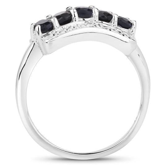 Genuine Black Sapphire and White Diamond Sterling Silver 5-Stone Graduated Ring