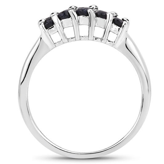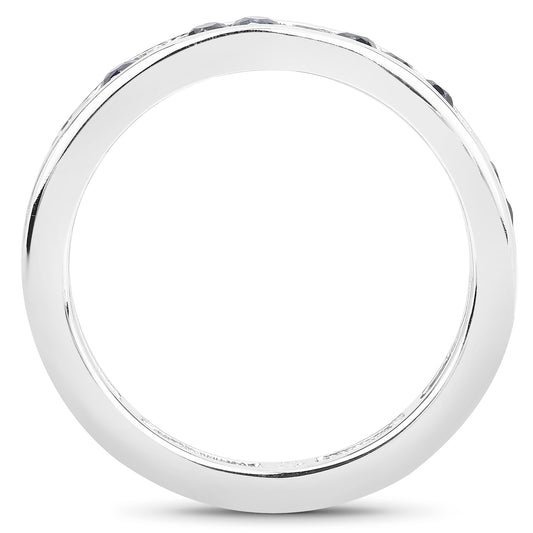 Genuine Black Sapphire Double-Row Set Sterling Silver Band Ring