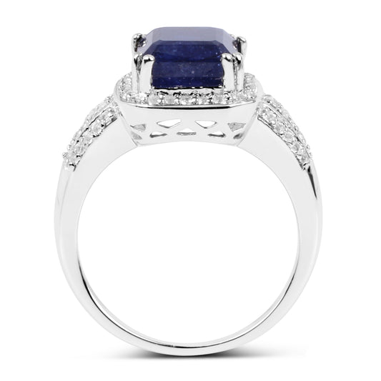 Genuine Blue Sapphire and White Diamond Sterling Silver Cluster Ring
