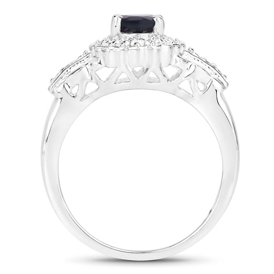 Genuine Black Sapphire and White Topaz Sterling Silver Cluster Ring