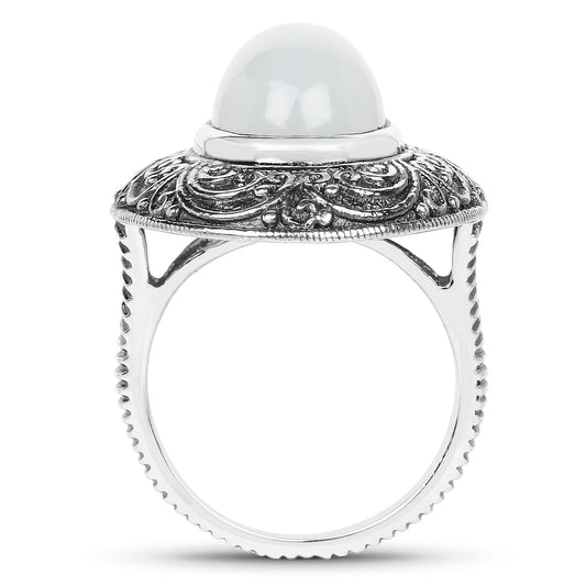 Genuine Aquamarine Oval Cabochon Sterling Silver Oxidized Ring