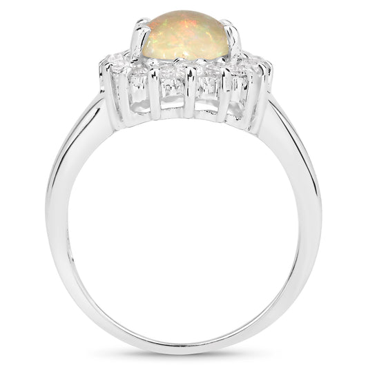 Genuine Ethiopian Opal and White Topaz Sterling Silver Ring
