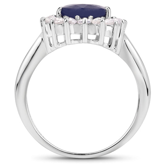 Genuine Black Sapphire and Tanzanite Sterling Silver Ring