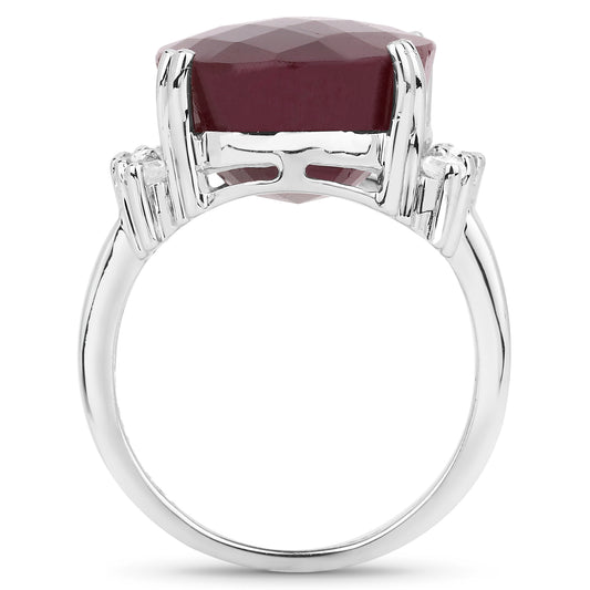 Dyed Ruby Oval and White Topaz Sterling Silver Ring