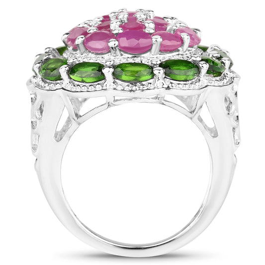 Genuine Ruby and Chrome Diopside Sterling Silver Cluster Ring