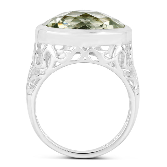 Genuine Green Amethyst Sterling Silver Filigree Statement Ring