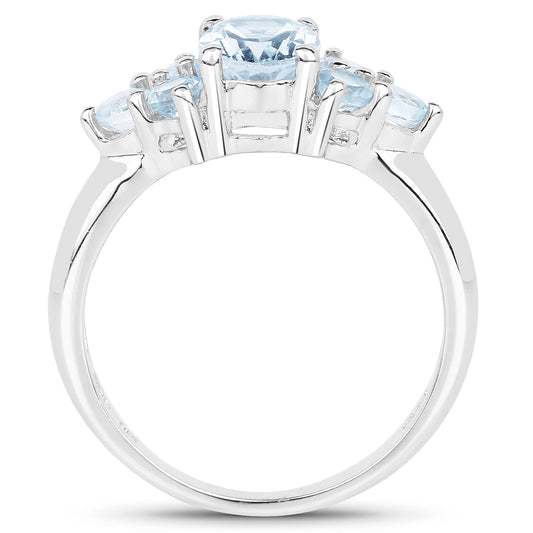 Genuine Blue Topaz Sterling Silver Cluster Ring