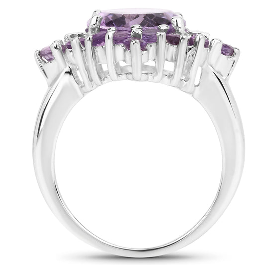 Genuine Amethyst and Rhodolite Sterling Silver Floral Ring
