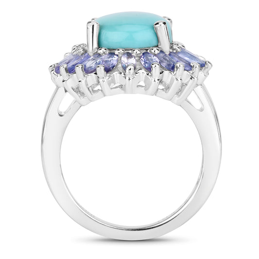 Genuine Larimar and Tanzanite Sterling Silver Ring