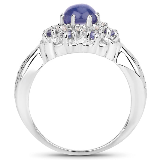 Genuine Opal, Tanzanite and White Topaz Sterling Silver Halo Ring