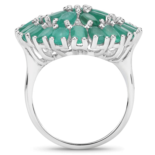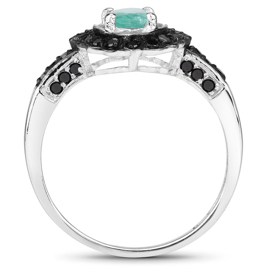 Genuine Zambian Emerald and Black Diamond Sterling Silver Halo Ring