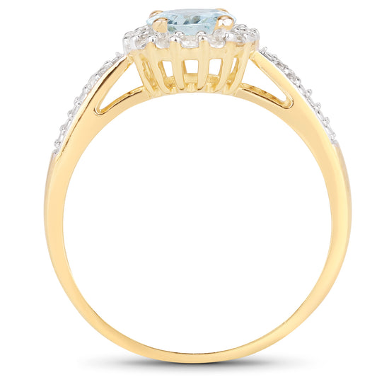 Genuine 14K Yellow Gold Plated Aquamarine and White Topaz Sterling Silver Ring