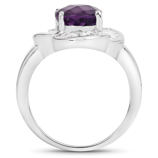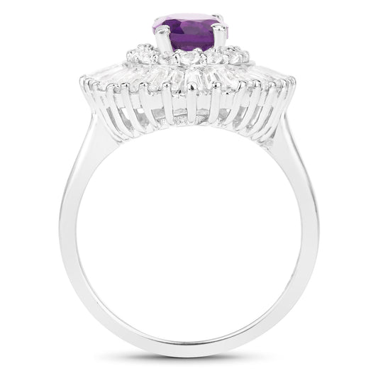 Genuine Amethyst and White Topaz Sunburst Ring in Sterling Silver