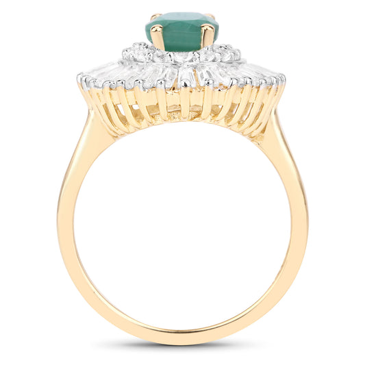 Genuine 14K Yellow Gold Plated Plated Emerald and White Topaz Sterling Silver Sunburst Ring