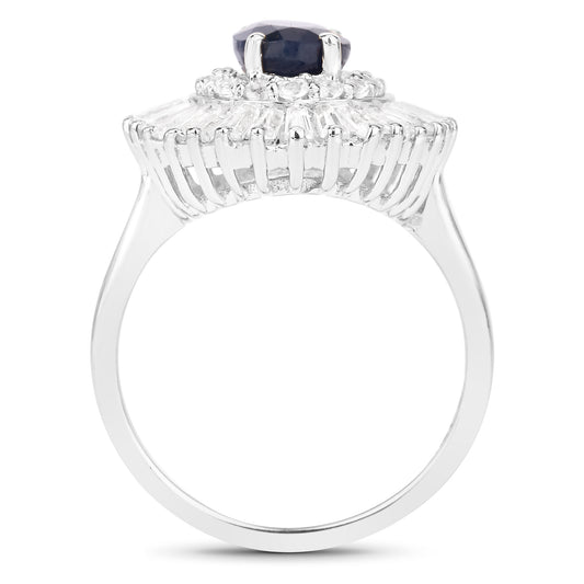 Genuine Kyanite and White Topaz Cocktail Ring in Sterling Silver