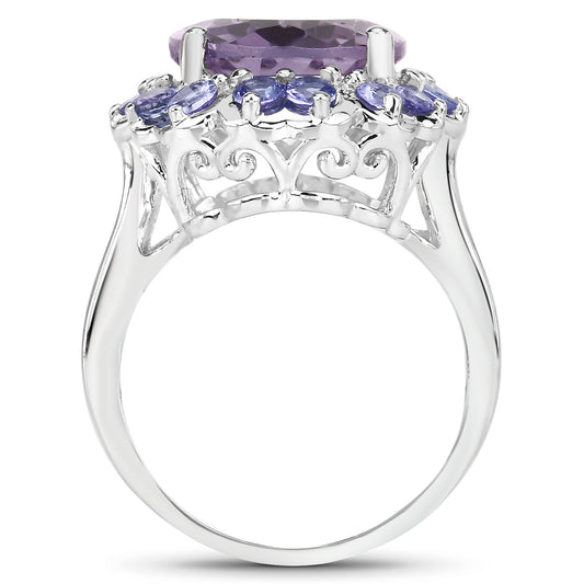 Genuine Amethyst and Tanzanite Sterling Silver Graduated Ring