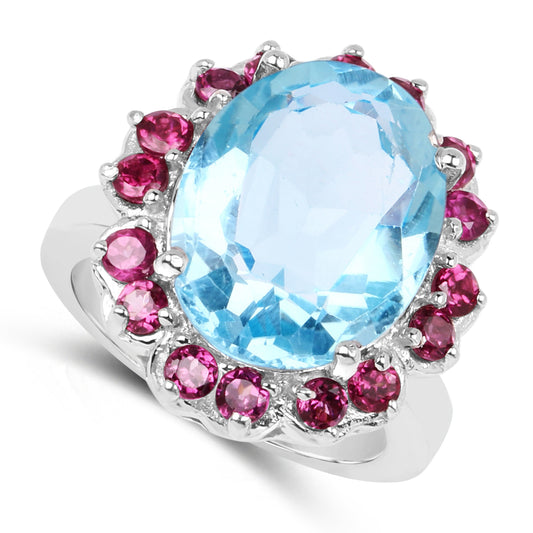 Genuine Blue Topaz and Rhodolite Sterling Silver Graduated Ring