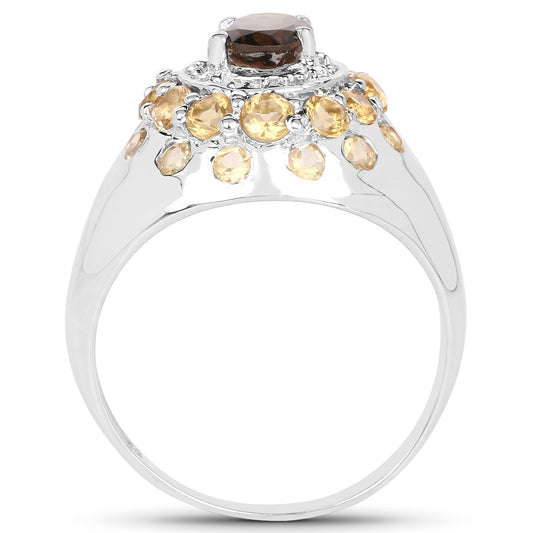 Genuine Smoky Quartz and Citrine Sterling Silver Graduated Ring