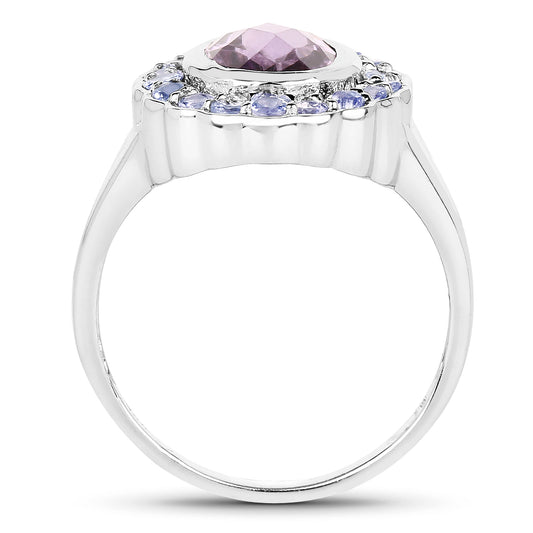 Genuine Amethyst and Tanzanite Sterling Silver Halo Ring
