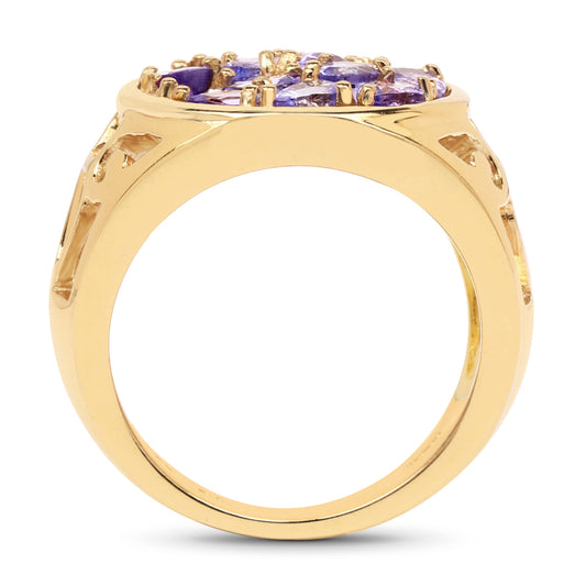 Genuine 14K Yellow Gold Plated Tanzanite Sterling Silver Ring
