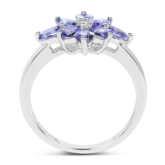 Genuine Tanzanite and Diamond Sterling Silver Floral Ring