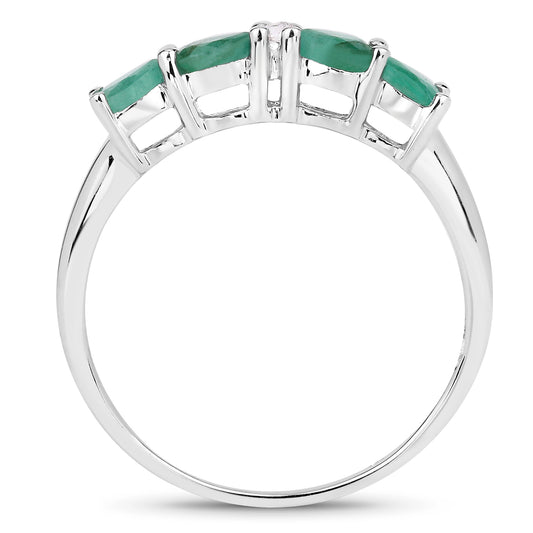 Genuine Emerald and White Diamond Sterling Silver Band Ring