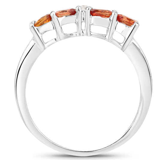 Genuine Orange Sapphire and White Diamond Sterling Silver Band Ring