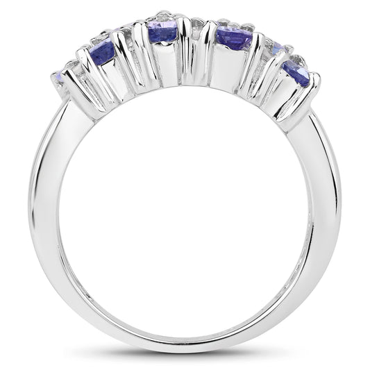 Genuine Tanzanite and White Diamond Sterling Silver Band Ring