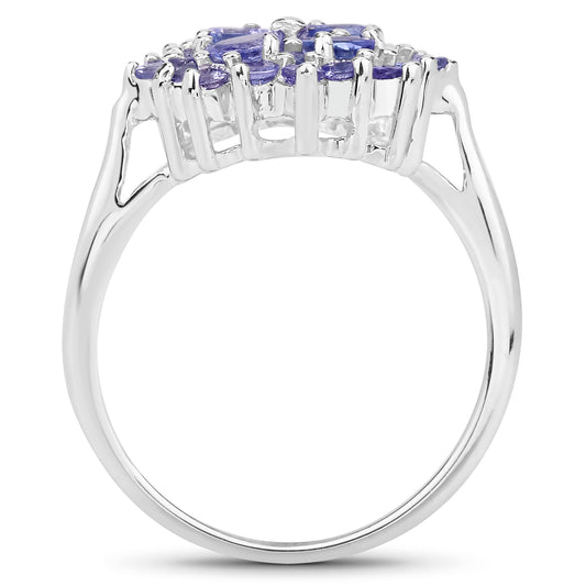 Genuine Tanzanite Sterling Silver Cluster Ring
