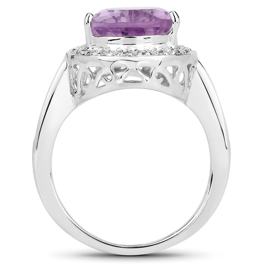 Genuine Amethyst and White Topaz Sterling Silver Ring