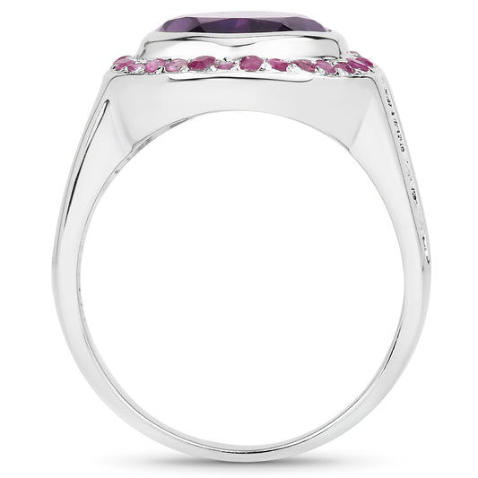 Genuine Amethyst and Ruby Sterling Silver Statement Ring