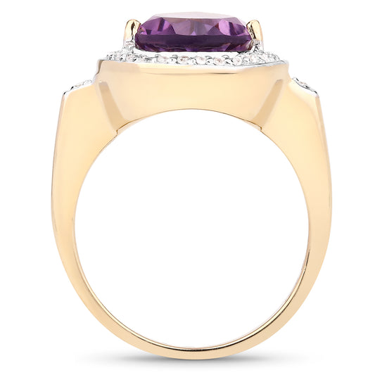 Genuine 14K Yellow Gold Plated Silver Amethyst and White Topaz Sterling Silver Ring