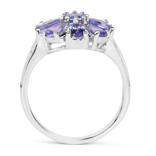 Genuine Blue Sapphire Sterling Silver Cluster Ring