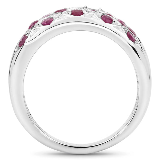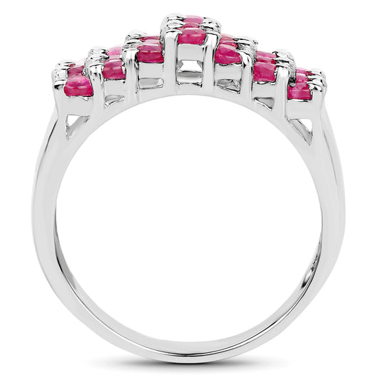 Genuine Ruby and White Topaz Sterling Silver Graduated Ring