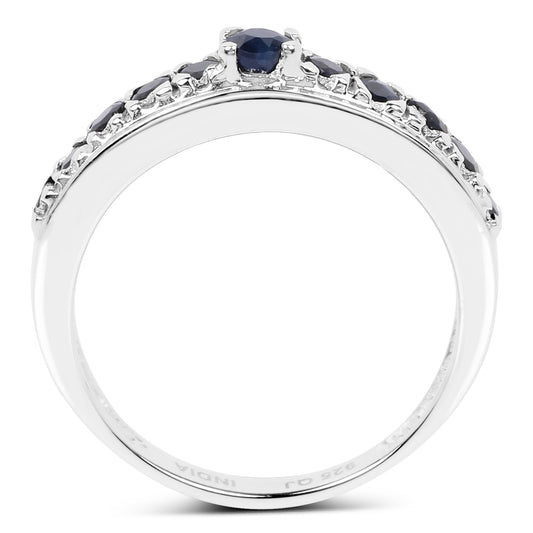 Genuine Blue Sapphire Sterling Silver Band Ring