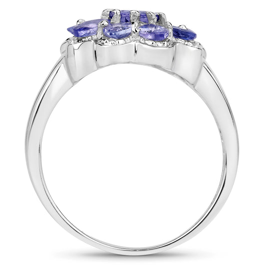 Genuine Tanzanite Sterling Silver Cluster Ring