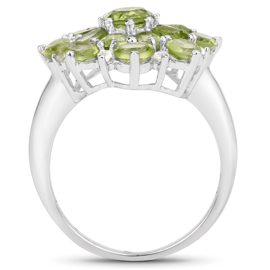 Genuine Peridot and White Topaz Sterling Silver Floral Ring
