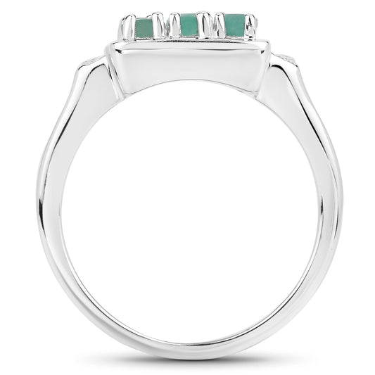 Genuine Emerald and White Diamond Sterling Silver Cluster Ring