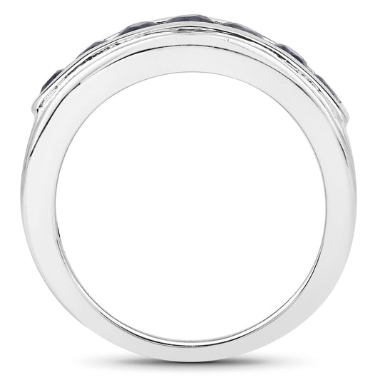 Genuine Blue Sapphire Sterling Silver Band Ring
