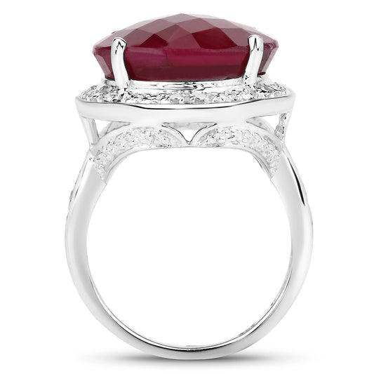 Dyed Ruby and White Topaz Sterling Silver Halo Ring
